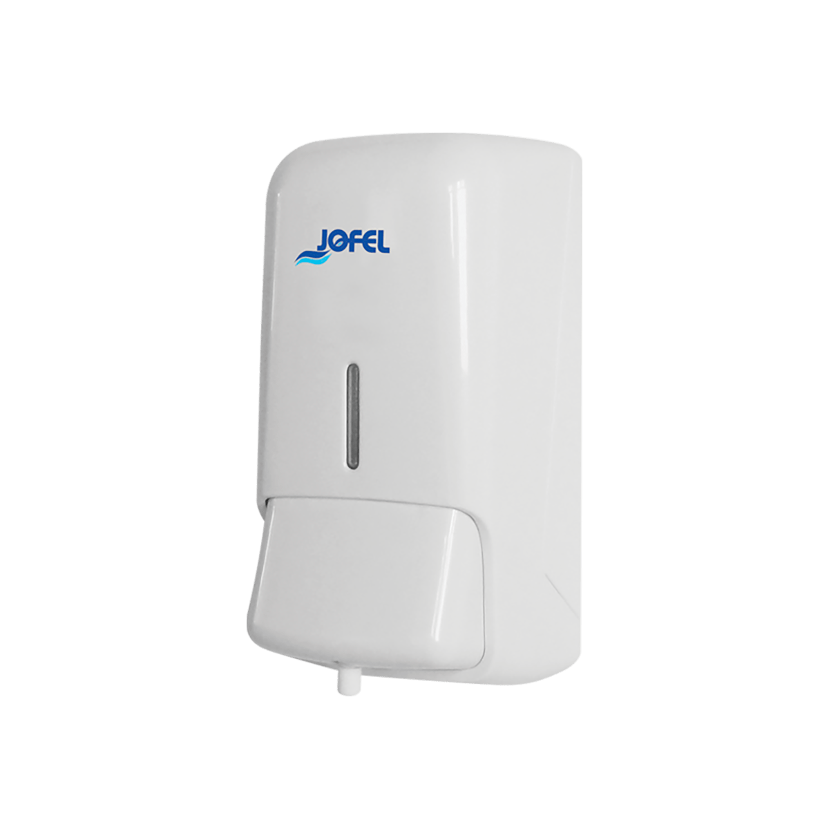 Dosificador de Jabón de Espuma. Base, Pulsador y Tapa Blanca con ranura en el centro para ver consumo de jabón. Se recomienda para W.C. públicos de alta rotación.